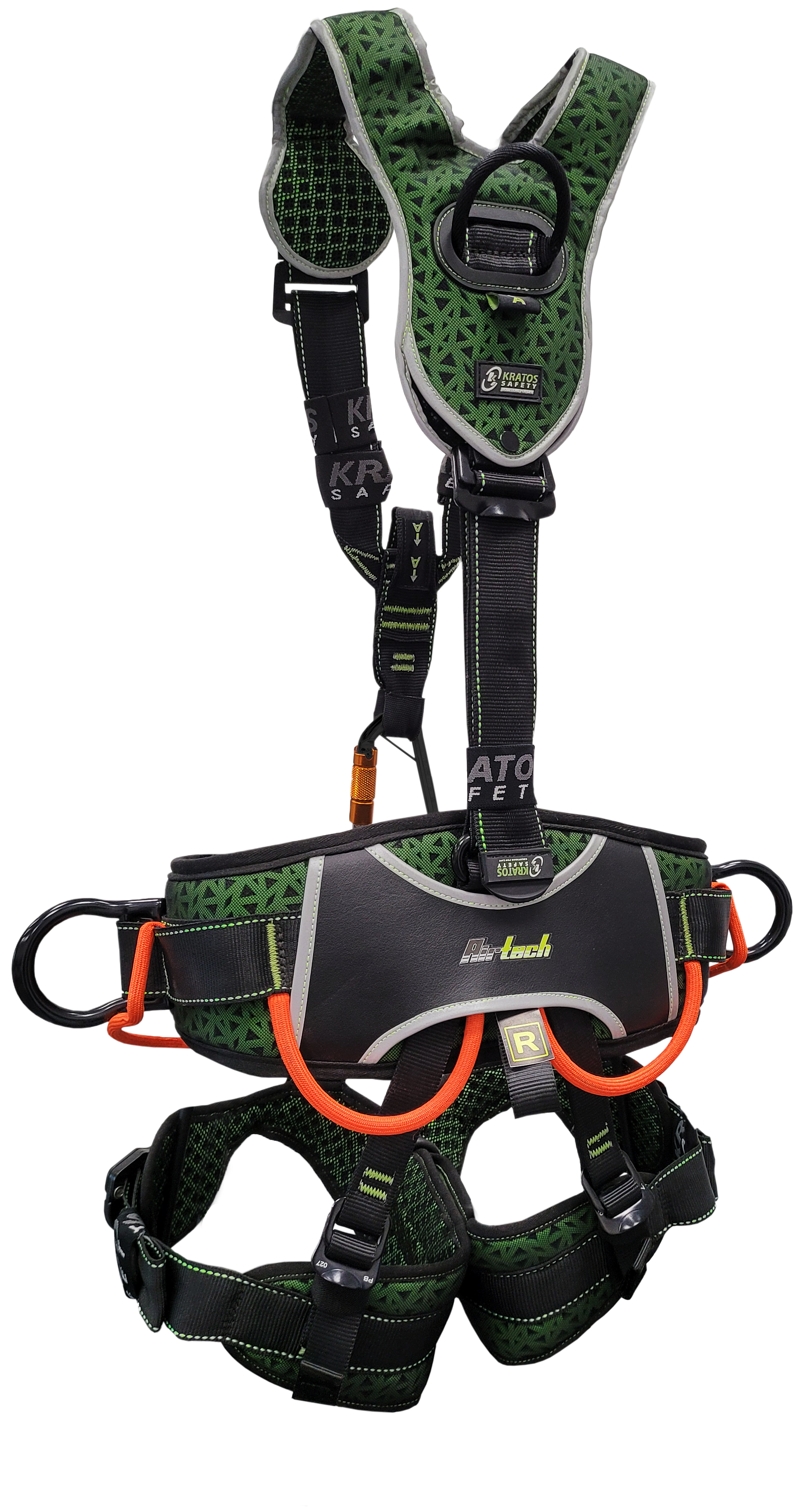 1 ventraler D-Ring für hängende Arbeiten und 2 seitliche Aluminium-D-Ringe für die Arbeitsplatzpositionierung.