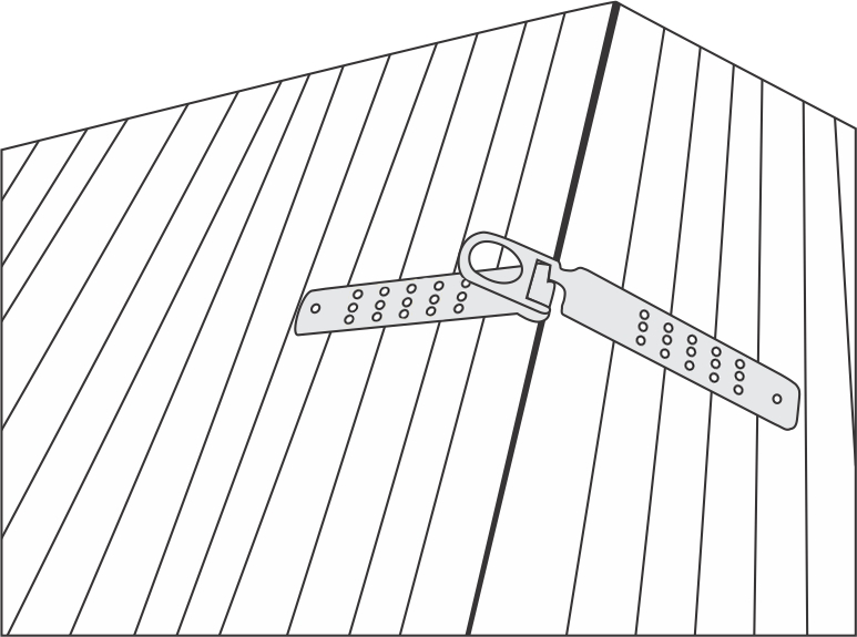 Konzipiert für die Anbringung an Balkenwerk (Querschnitt min. 85x85 mm - Belastbarkeit > 1 tons mittels 12 hoch widerstandsfähigen Holzschrauben 5,4 x 60 mm (im Lieferumfang enthalten) oder 20 verzinkten Nägeln 4,2 x 90 mm (im Lieferumfang enthalten).