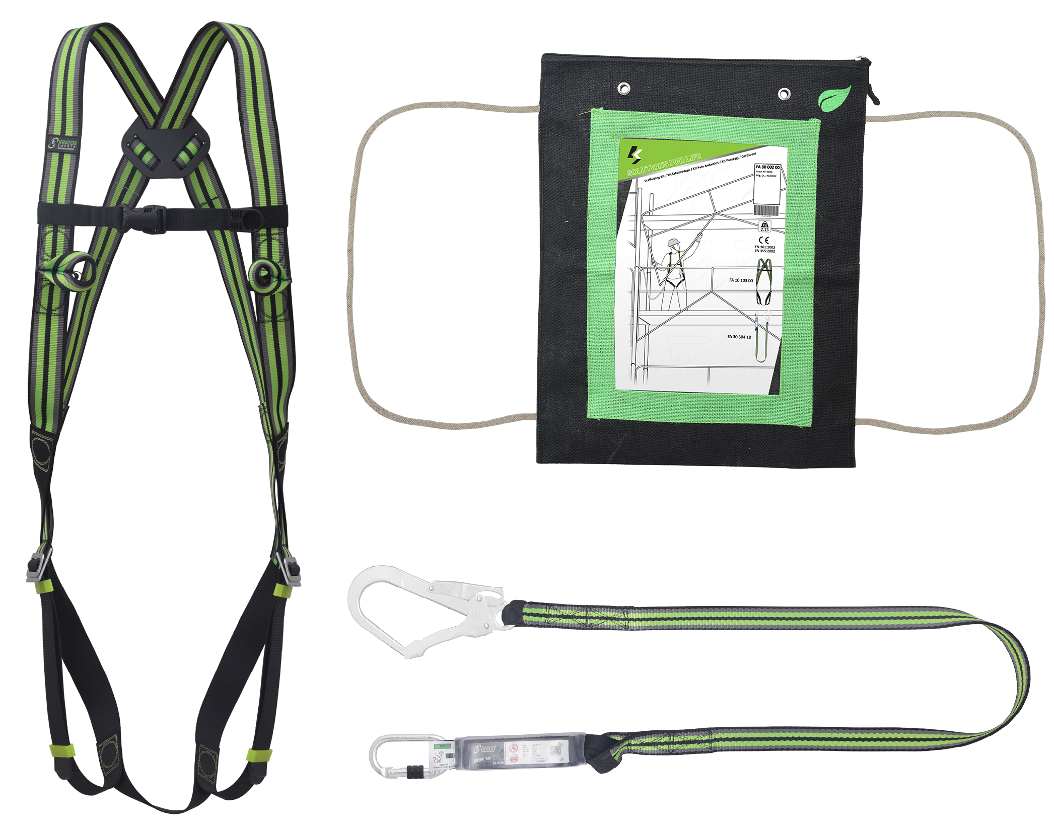 Produktinformationen "Gerüst-Set mit einem Auffanggurt und einem Verbindungsmittel aus Gurtband mit Falldämpfer "